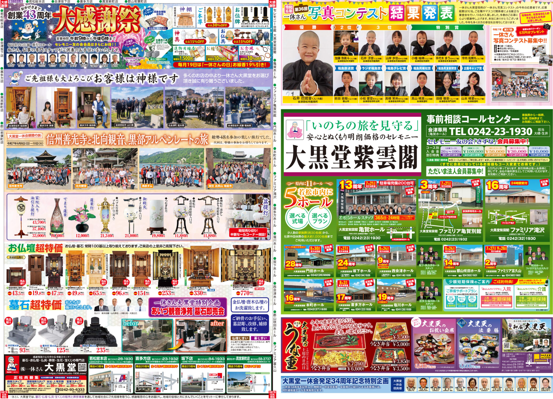 40年以上の長きにわたって地域の方々のご先祖様のご供養やお見送りをお手伝いできたことは、私たちにとって満腔の喜びの何ものでもありません。これもひとえに、これまで当社を支え、応援してくださっている大黒堂一休会の皆様をはじめ、セレモニー友の会「きずな」、SP会の皆様、さらにはお取引業者の方々で組織されたSPI会の皆様の賜と深甚なる感謝と御礼を申し上げます。